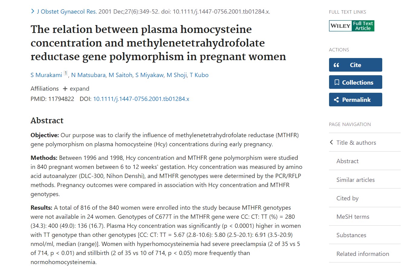2002 m. buvo atliktas didelis japonų kohortinis tyrimas (840 moterų, 6–12 nėštumo savaičių), paskelbta žurnale „The Journal of Obstetrics“ ir Ginekologijos tyrimai sustiprino grandinę: TT → Hcy padidėjimas → nepalankus nėštumas rezultatus.