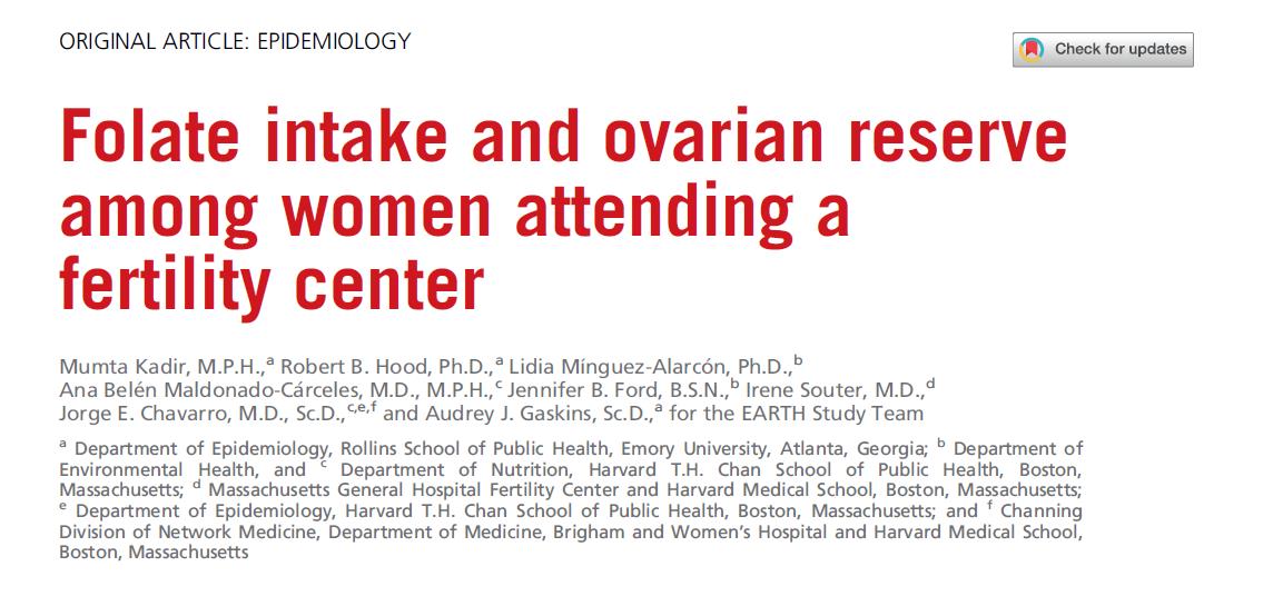 Šiame tyrime buvo analizuojami 552 apsilankiusių moterų duomenys Masačusetso bendrosios ligoninės vaisingumo centras JAV, sutelkiant dėmesį apie ryšį tarp folio rūgšties vartojimo ir kiaušidžių rezervinės funkcijos (matuojama pagal Antralinių folikulų skaičių, AFC).