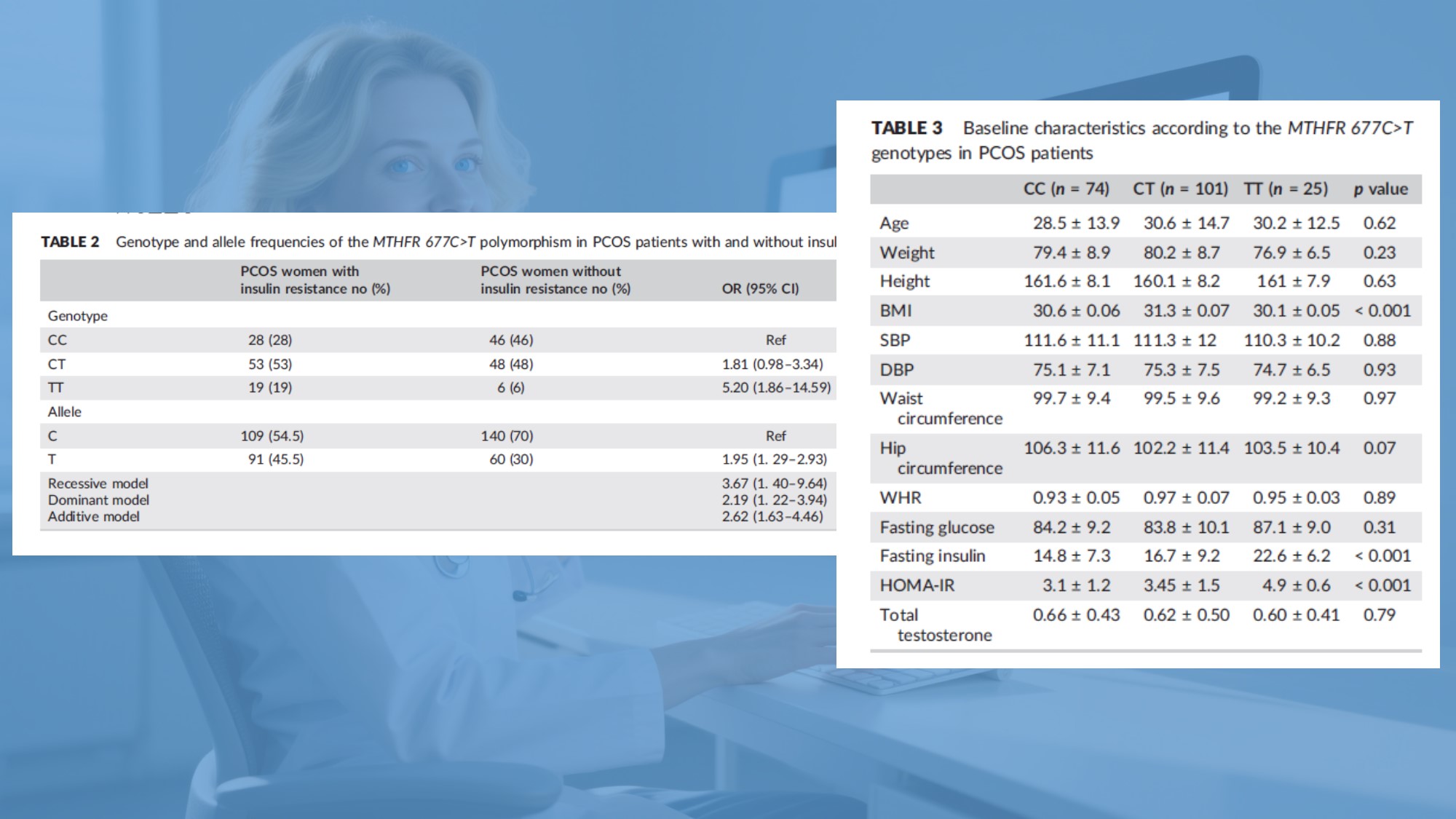 Autoriai aiškiai pareiškė, kad Egipto moterims, sergančioms PCOS, *MTHFR* 677C>T polimorfizmas yra nepriklausomas insulino biomarkeris pasipriešinimas. Sumažėjęs fermentų aktyvumas sukelia padidėjusį homocisteino kiekį, niežėjimą medžiagų apykaita nepalankiu keliu.