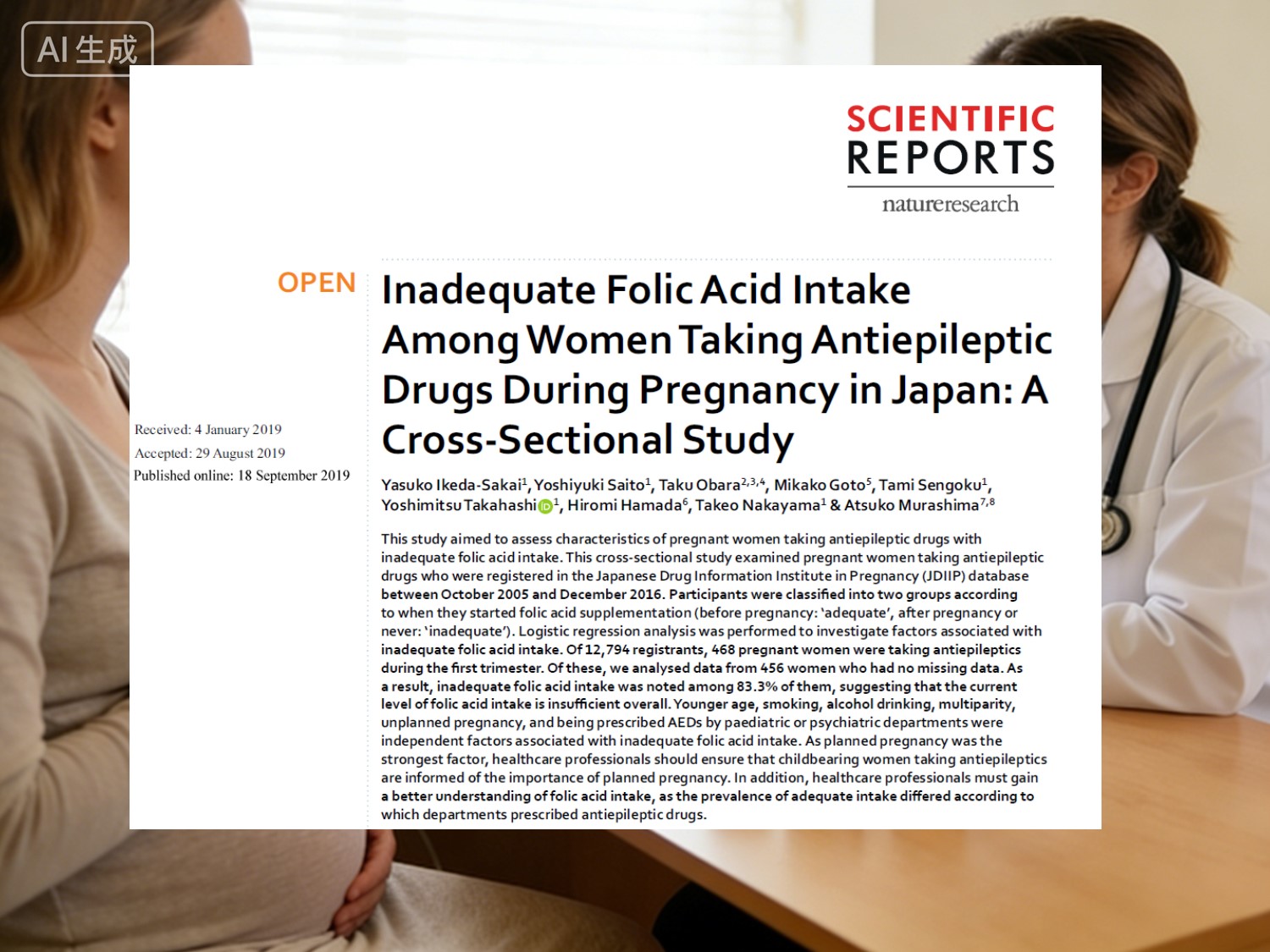 Japonijos skerspjūvio tyrimas, paskelbtas mMokslinės ataskaitos(Nature portfolio, 2019) apklausė 456 nėščias moteris, vartojančias AED:
