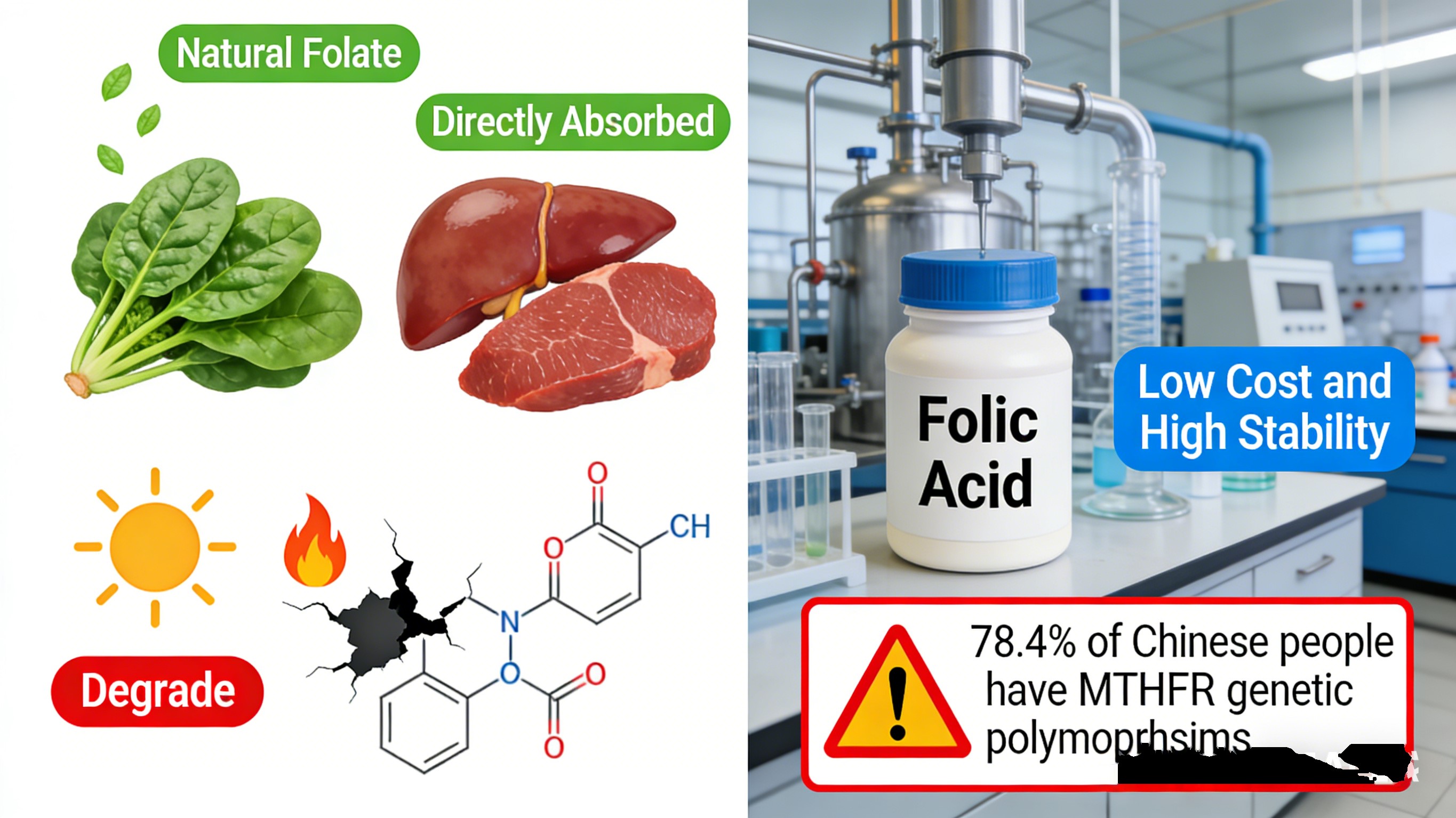 Tačiau vykstantys klinikiniai ir mitybos tyrimai atskleidė jo Achilo kulnas: folio rūgštis neturi vidinės fiziologinės veiklos ir turi pereina keturis fermentinius veiksmus, kad taptų absorbuojamas. Mano 19 metų MTEP šou realus poveikis Kinijoje: 78% gyventojų turi MTHFR geną polimorfizmas, įskaitant 28% su sunkiu medžiagų apykaitos sutrikimu - fermentų aktyvumas net 30% laukinio tipo individų.